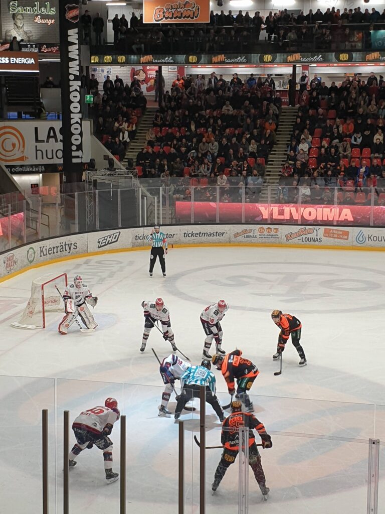 Meitä oli 22 innokasta insinööriä kannustamassa kotijoukkuetta. Tällä kertaa tuli tappio. Tavattiin hallilla ennen peliä klo 16.15 alkaen, jossa liput jaettiin sekä kioskiliput myös. Kotijoukkueen kausi on ollut hyvä ja jatkuu vielä play off peleihin.